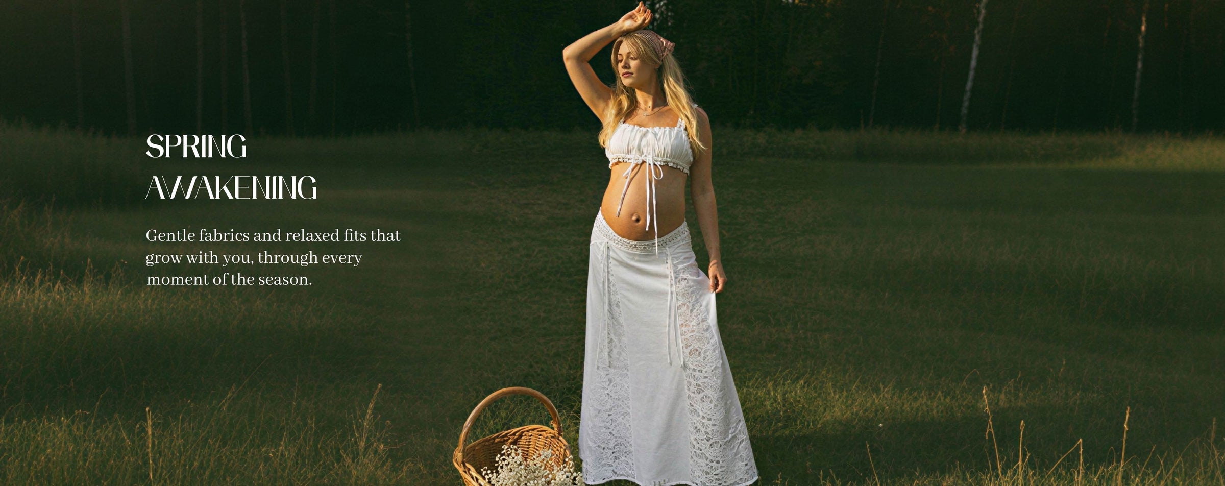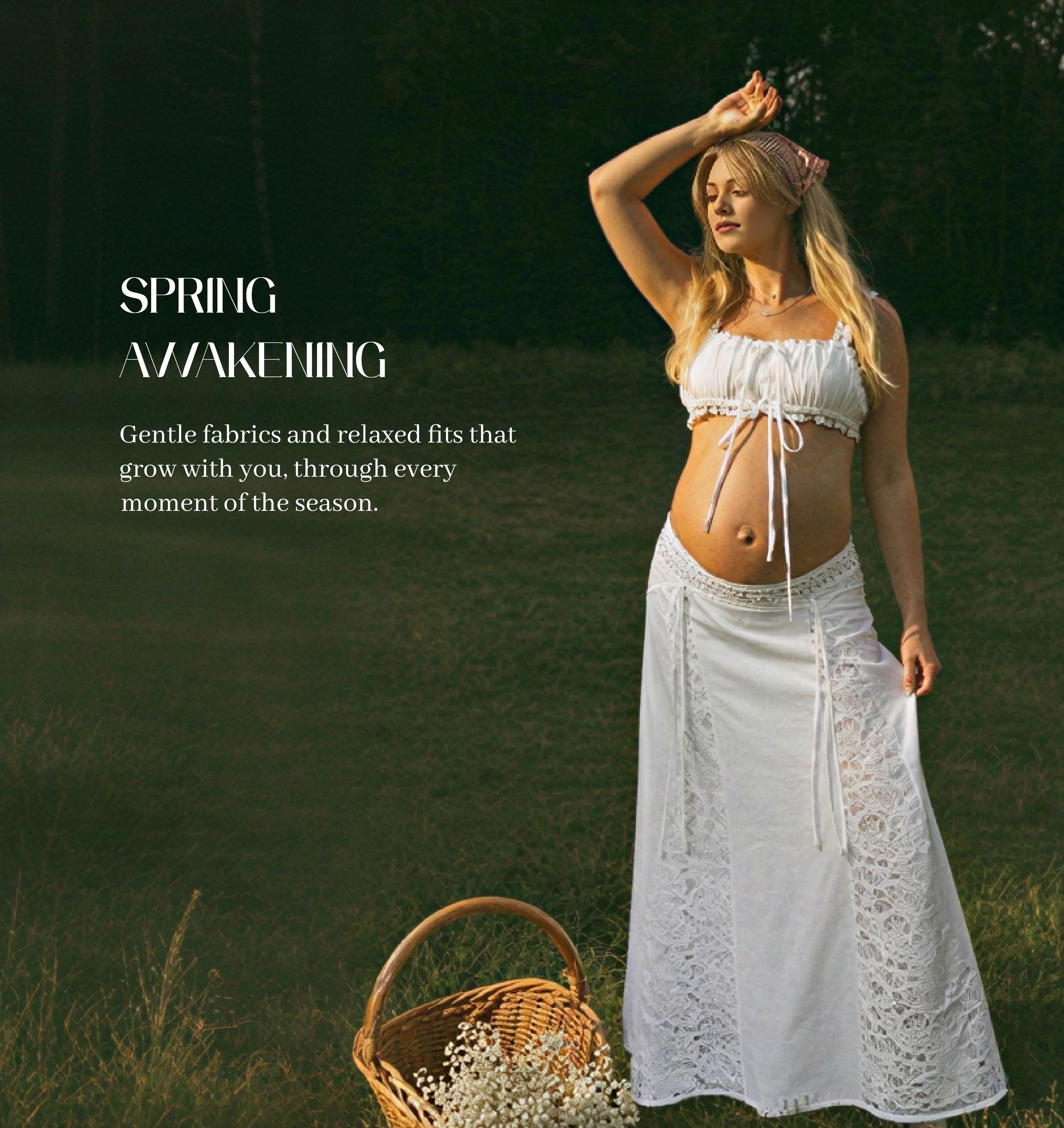 Momyknows White Lace Drawstring Tank Crop Big Swing Two Piece Set Maternity Maxi Dress