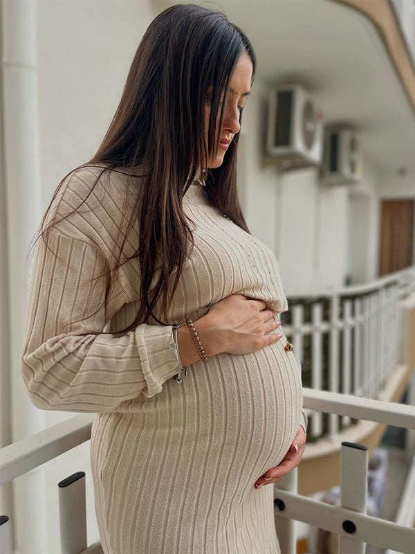 Momyknows Apricot 2-in-1 Ribbed Daily Maternity Mini Dress