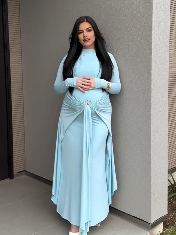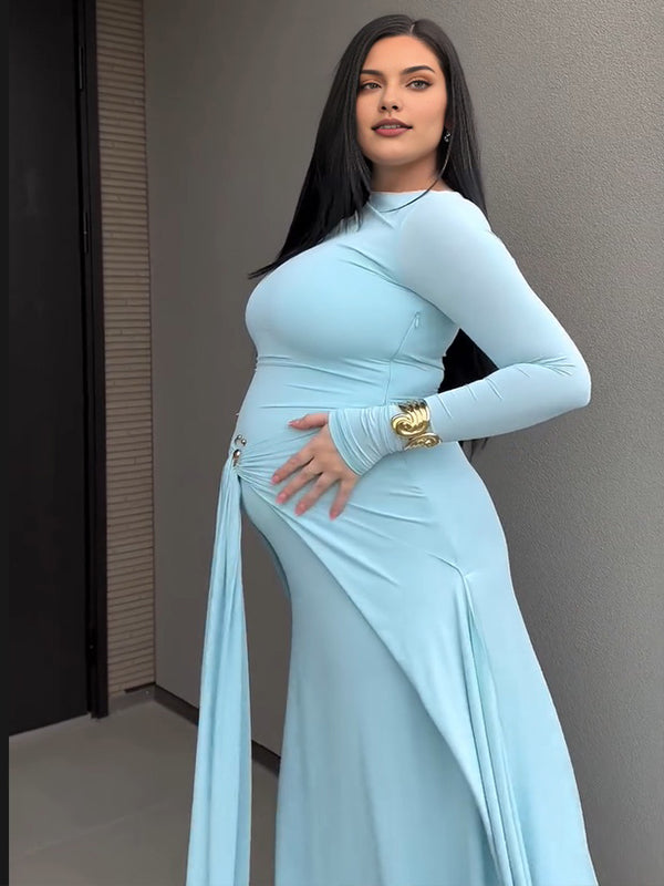 Momyknows Lace Up Ring Buckle Ruched Maternity Photoshoot Maxi Dress