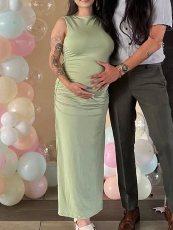 Momyknows Side Slit High Waisted Maternity Photoshoot Maxi Dress
