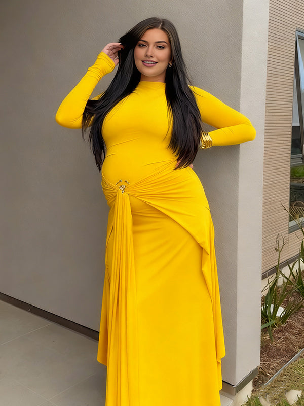 Momyknows Yellow Silk Baby Shower Maternity Maxi Dress