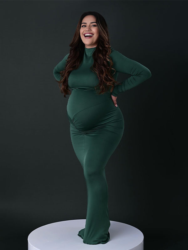 Momyknows Dark Green Ruched Photoshoot Maternity Maxi Dress