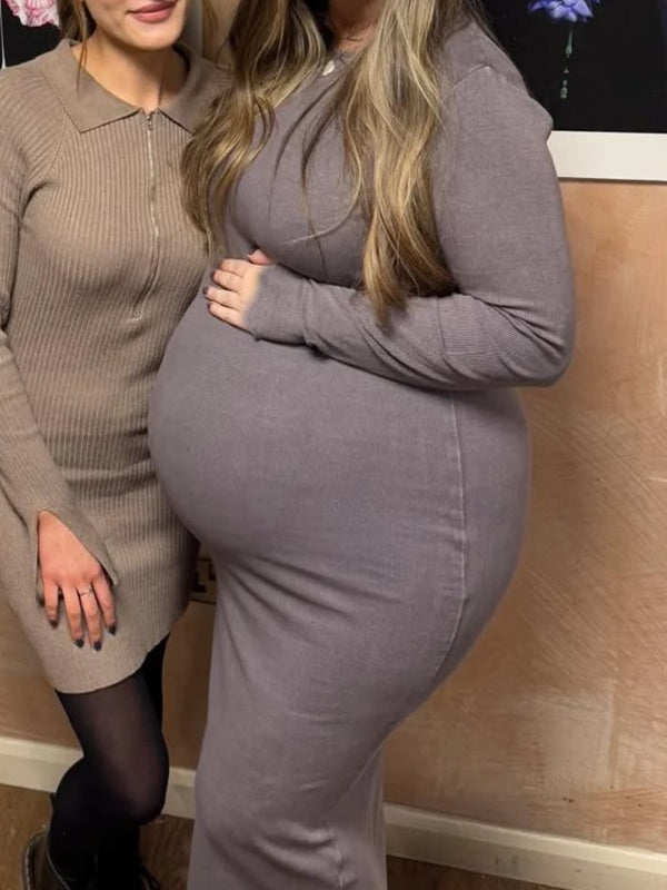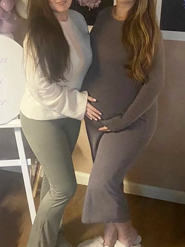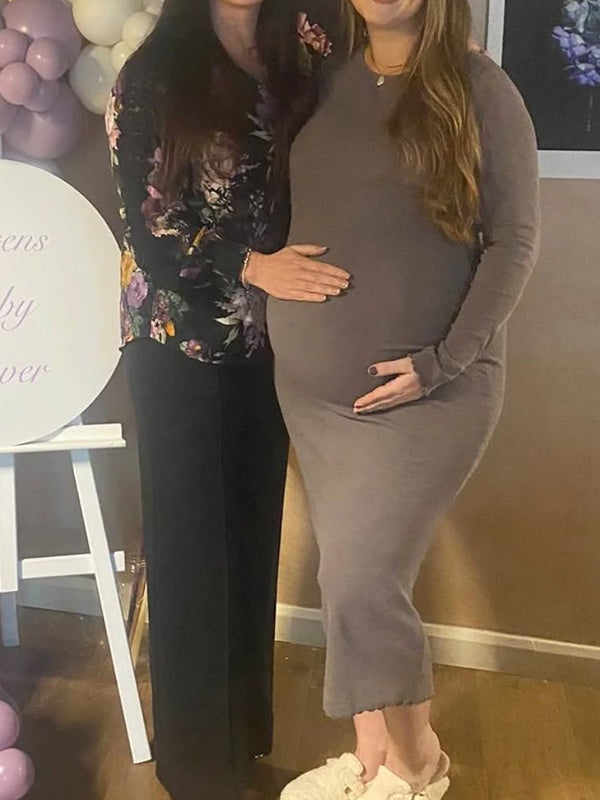 Momyknows Grey Round Neck Crochet Maternity Baby Shower Sweater Maxi Dress