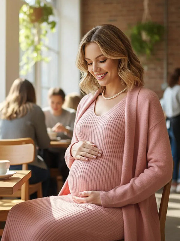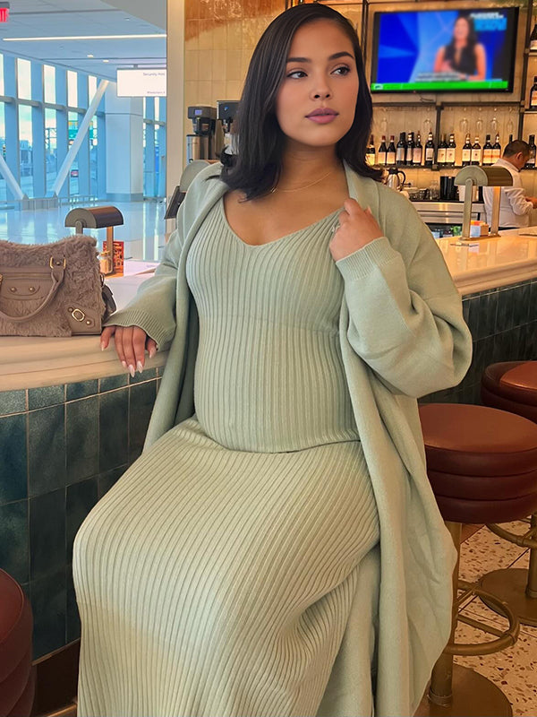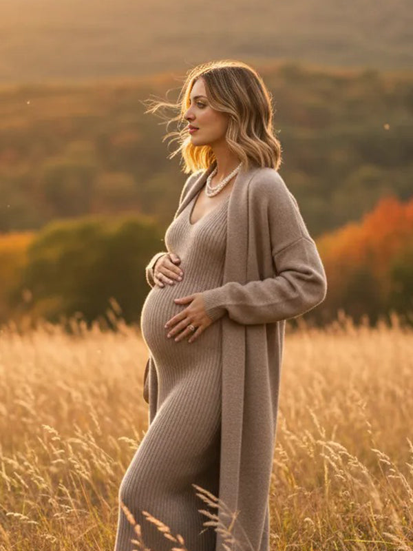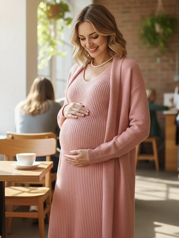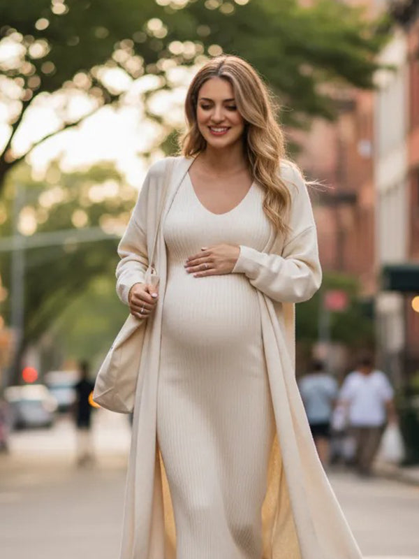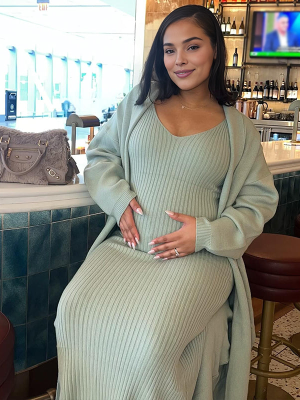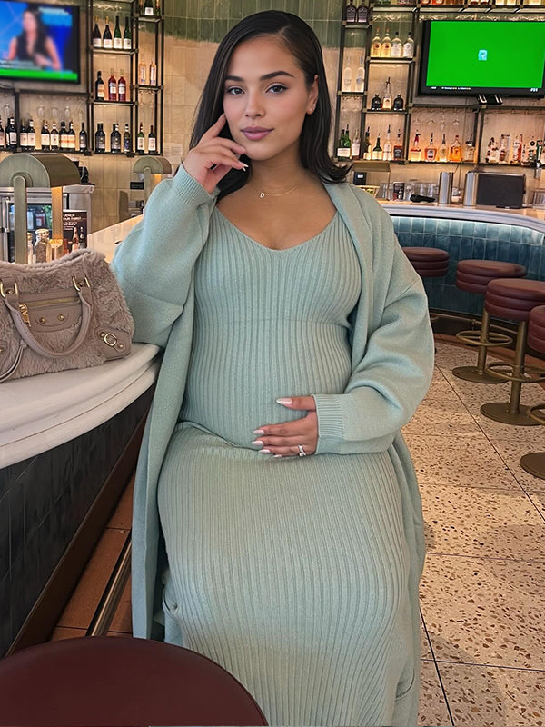 Momyknows Knit Tank Bodycon Maxi Dress And Cardigan Two Piece Set Maternity Outfit