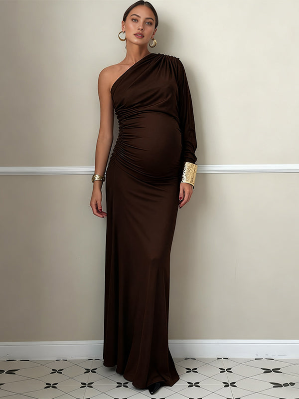 Momyknows One Shoulder Ruched Baby Shower Maternity Maxi Dress