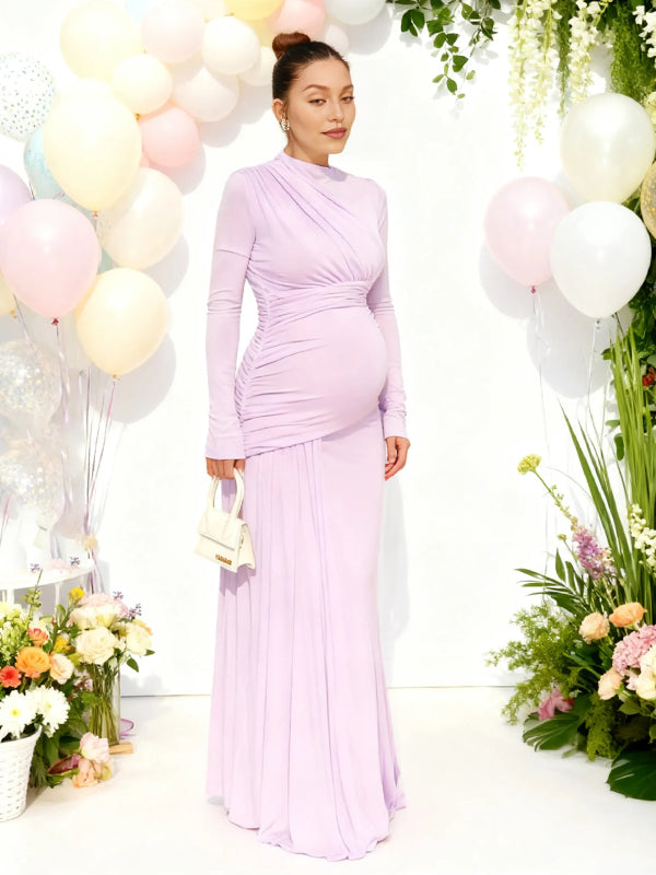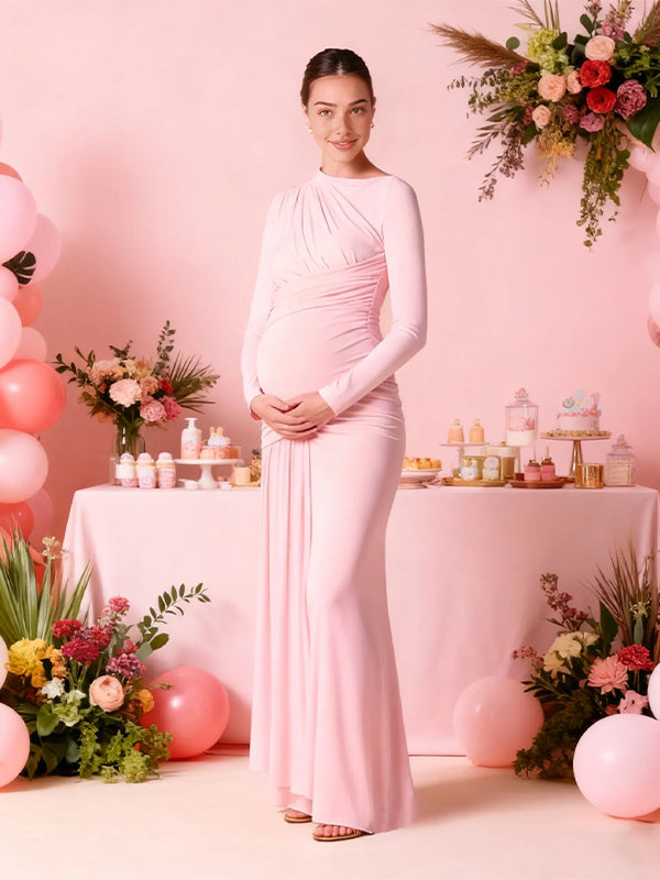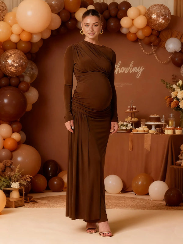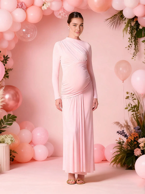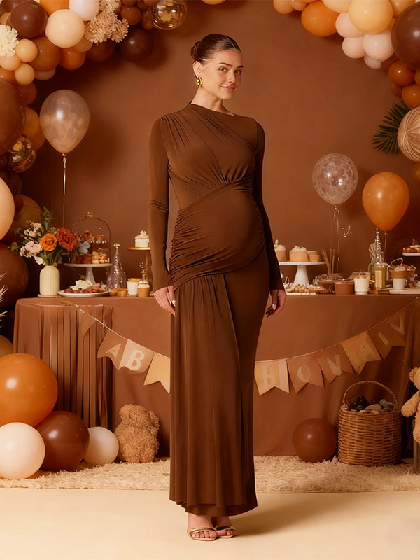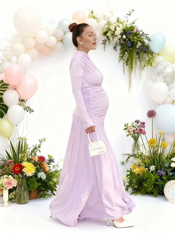 Momyknows Ruched Draped Baby Shower Maternity Maxi Dress