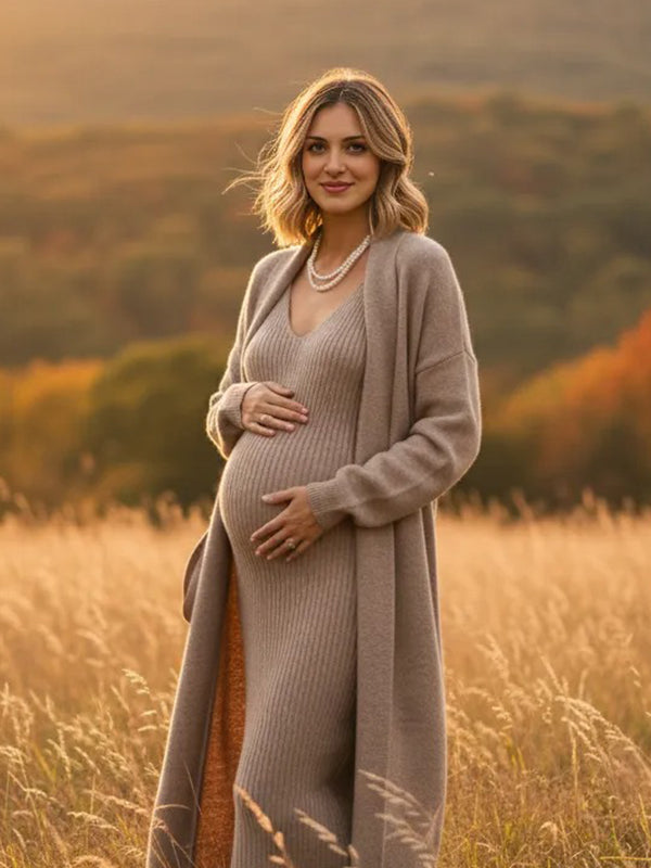 Momyknows Knit Tank Bodycon Maxi Dress And Cardigan Two Piece Set Maternity Outfit