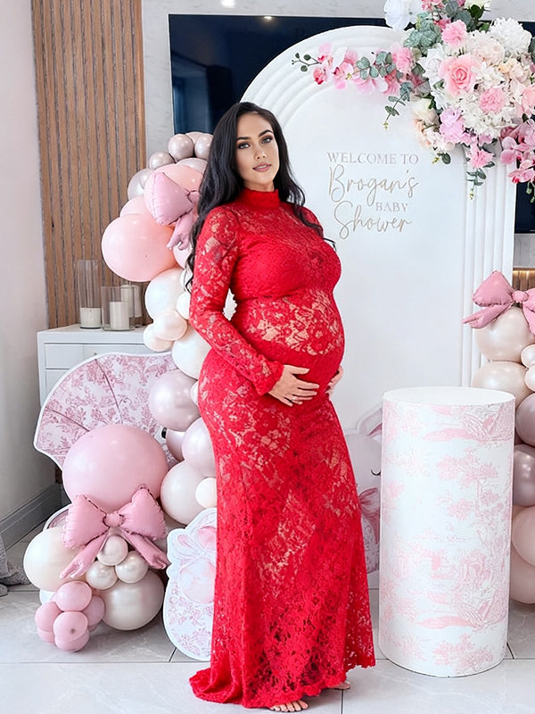 Momyknows Red Lace Splicing Maternity Baby Shower Maxi Dress