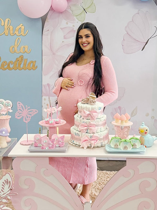 Momyknows Pink Spliced Grenadine Zipper Maternity Photoshoot Maxi Dress