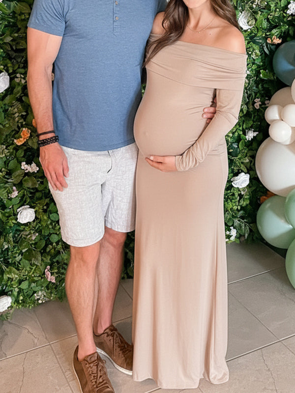 Momyknows Off Shoulder Ruched A-line Elegant Maternity Maxi Dress