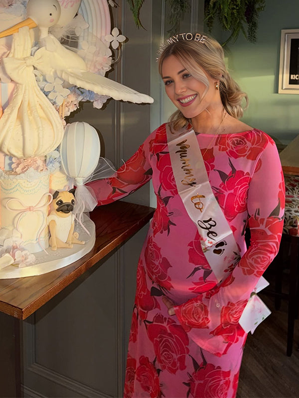 Momyknows Red Floral Sheer Baby Shower Maternity Maxi Dress