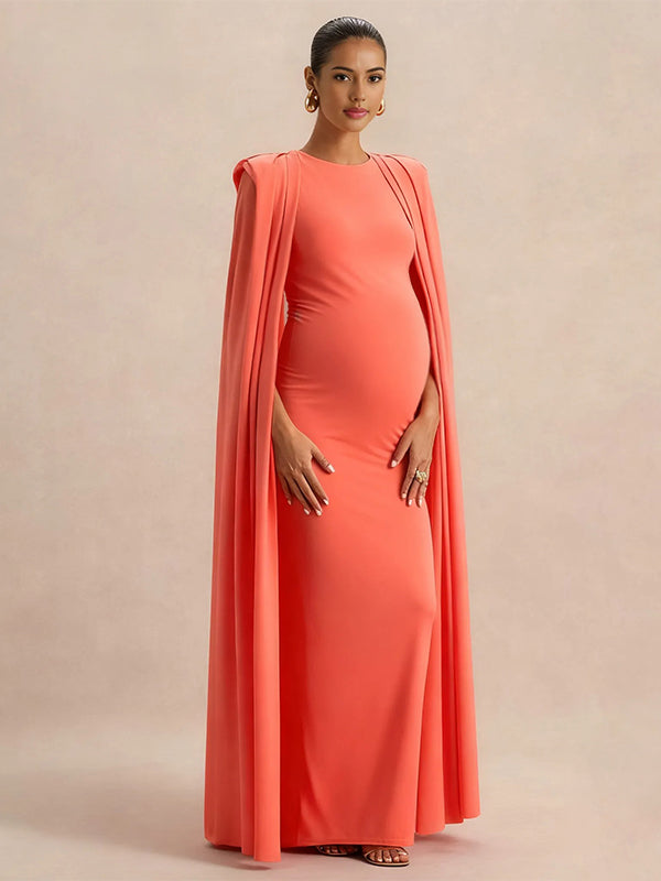 Momyknows High Neck Spliced Cape Plus Size Maternity Baby Shower Maxi Dress