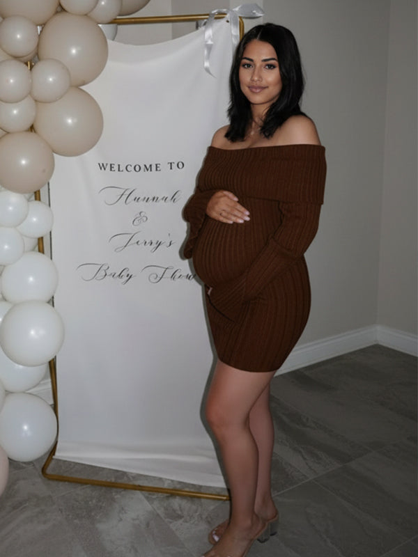 Momyknows Knit Off Shoulder Flare Sleeve Bodycon Maternity Sweater Maxi Dress