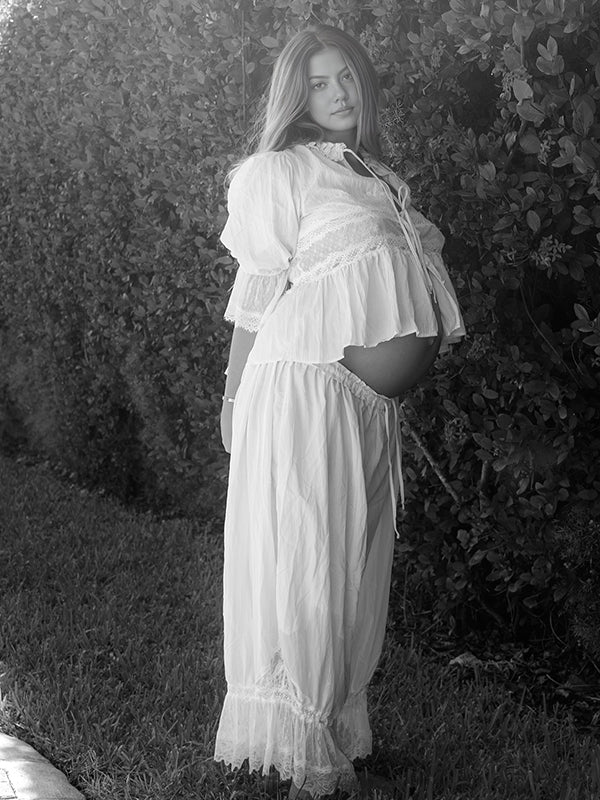 Momyknows White Lace Lace-up Two Piece Maternity Photoshoot Suit