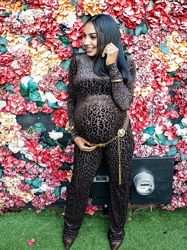 Momyknows Black Cheetah Bodycon Maternity Baby Shower Jumpsuit