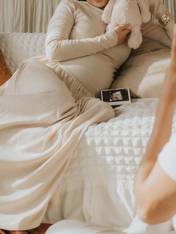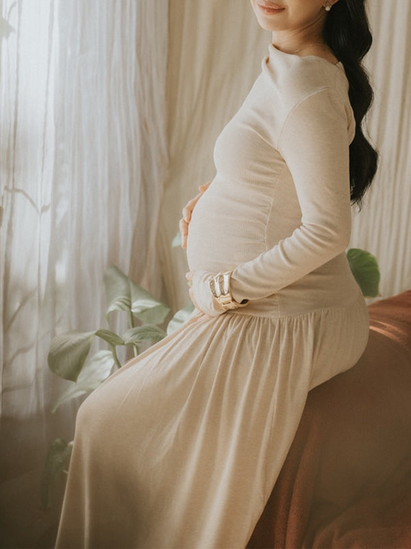 Momyknows Apricot Ruched Pocket Maternity Baby Shower Maxi Dress