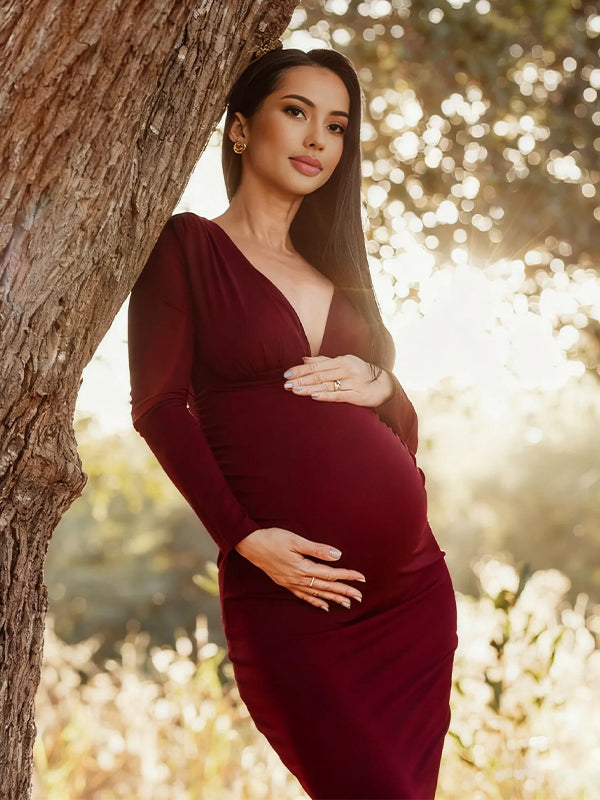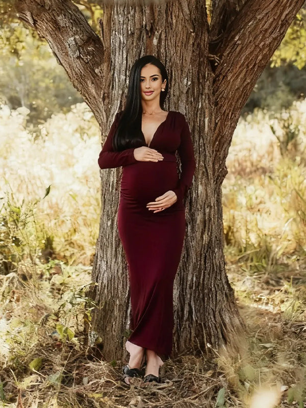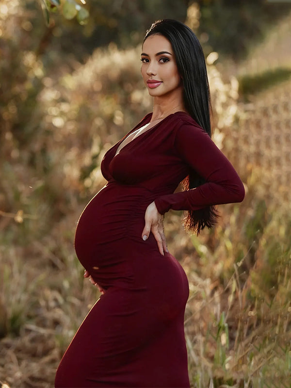 Momyknows Ruched Photoshoot Maternity Maxi Dress