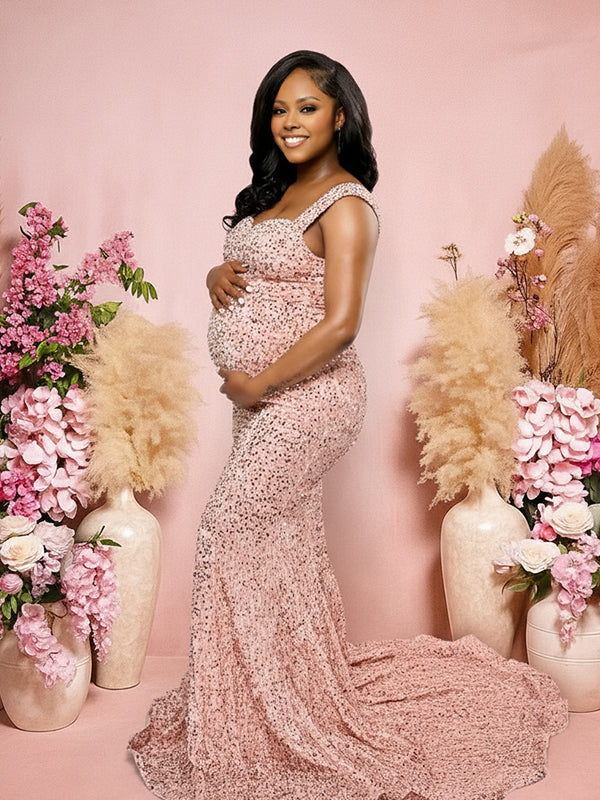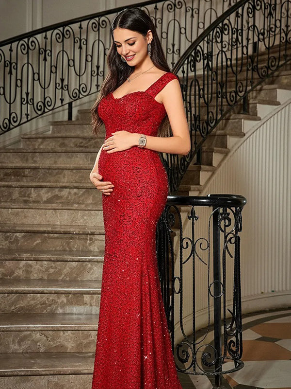 Momyknows Sequin Tank Sweetheart Neckline Mermaid Elegant Gown Maternity Maxi Dress