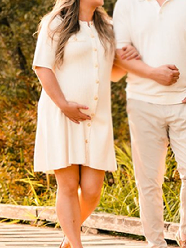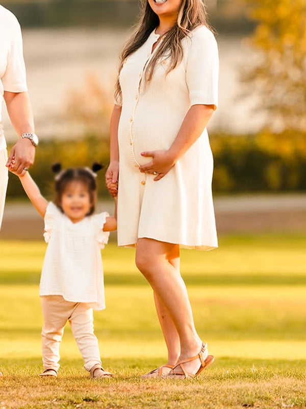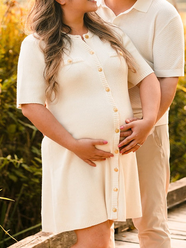 Momyknows White Tache Crochet Pocket Maternity Photoshoot Sweater Mini Dress