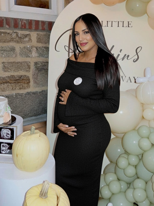 Momyknows Black Off Shoulder Crop Top Maternity Photoshoot Maxi Dress