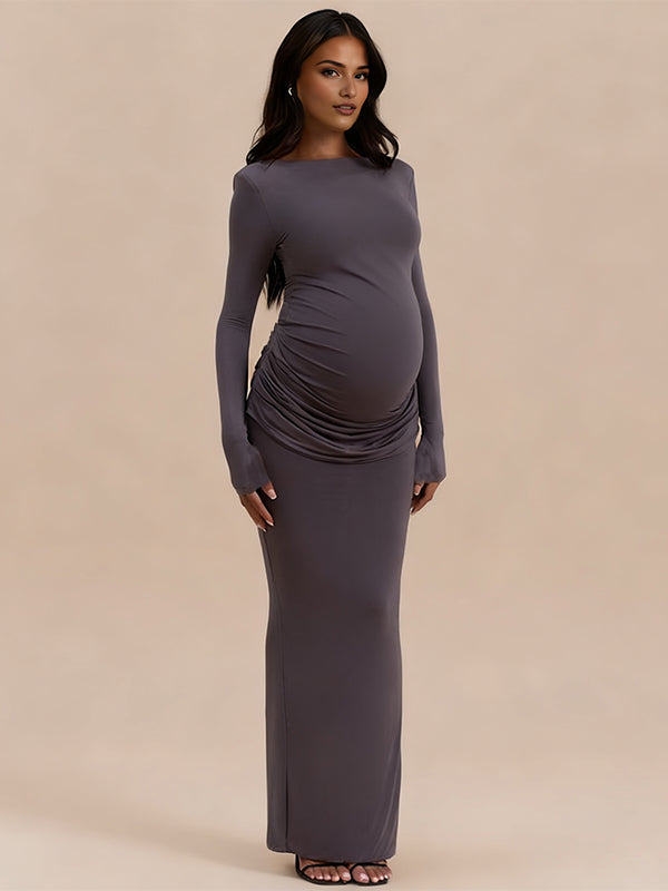 Momyknows Ruched Back Slit Photoshoot Maternity Maxi Dress