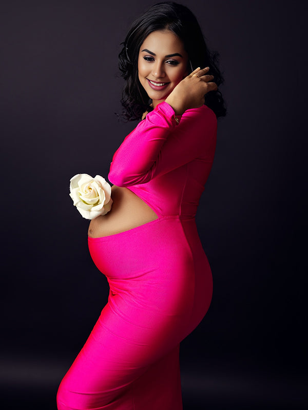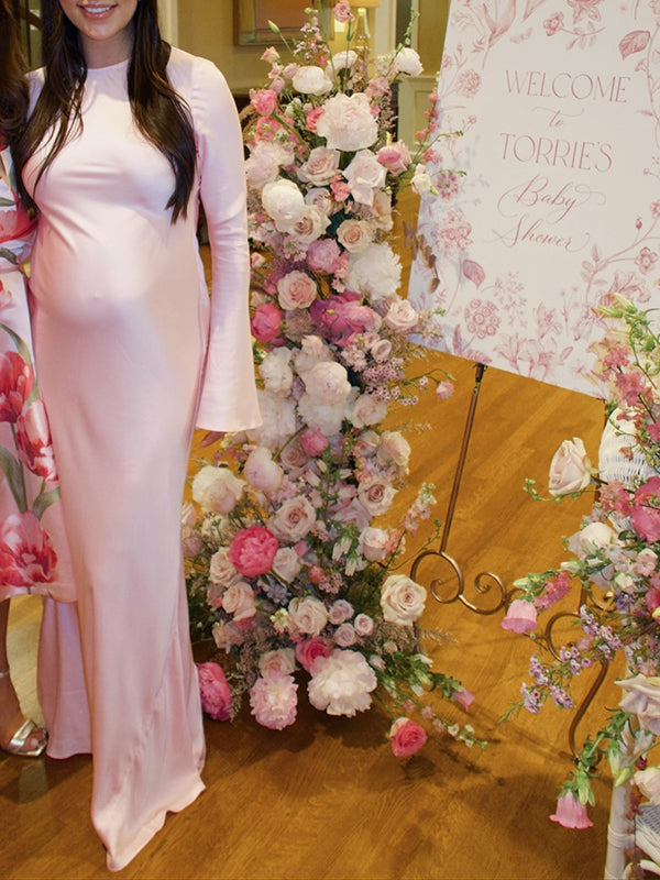 Momyknows Pink Silk Baby Girl Shower Maternity Maxi Dress