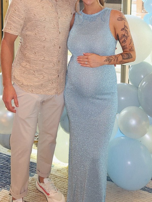Momyknows Glitter Bright Wire Knit Backless Bodycon Sheer Maternity Maxi Dress