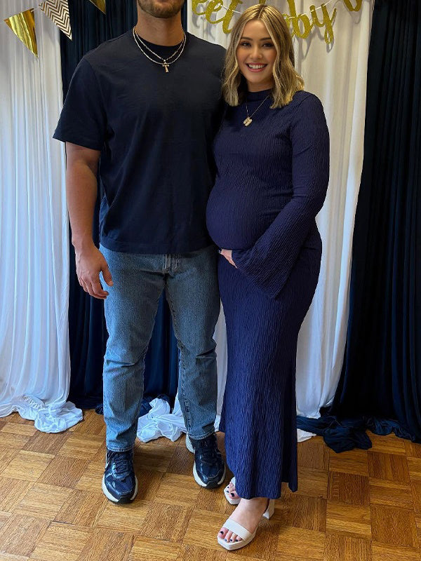 Momyknows Dark Blue Smocked Flare Sleeve Baby Shower Maternity Maxi Dress