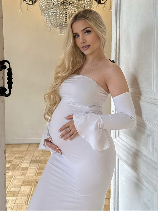 Momyknows White Off Shoulder Flare Photoshoot Maternity Maxi Dress