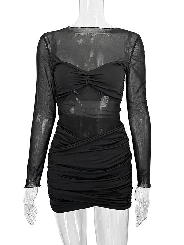 Momyknows Black Ruched Sheer Baby Shower Maternity Mini Dress