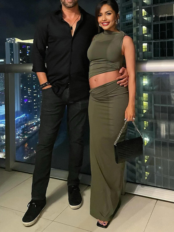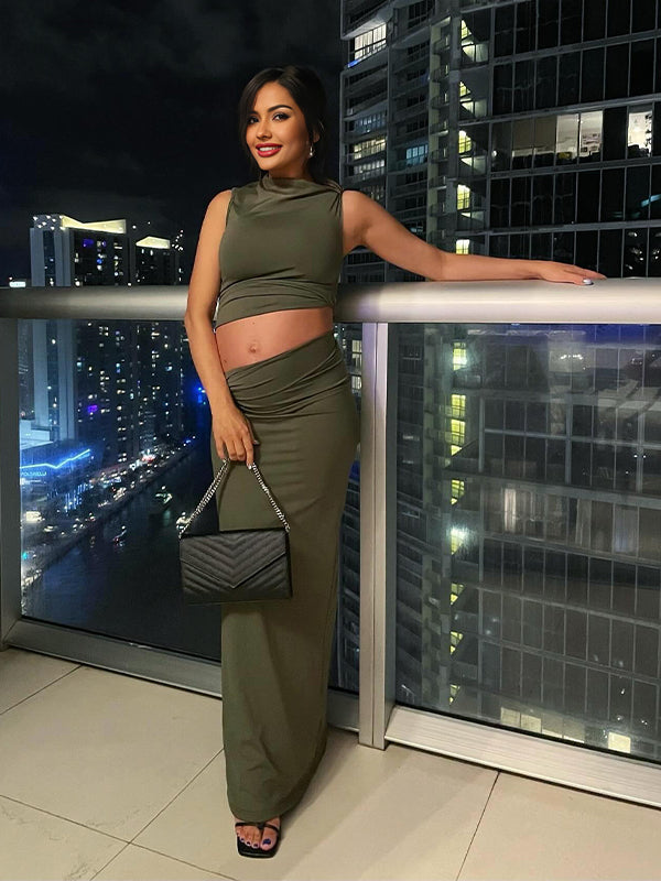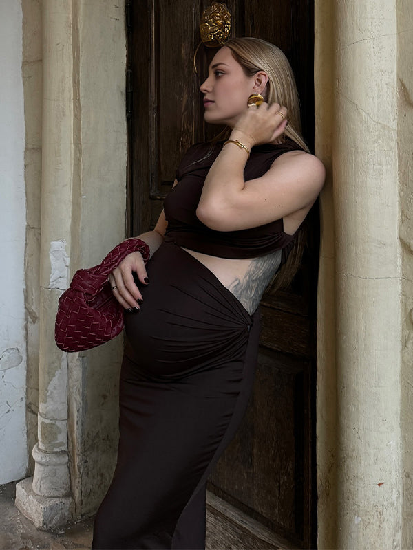 Momyknows 2-in-1 Ruched Irregular Twist Cut Out Maternity Maxi Dress