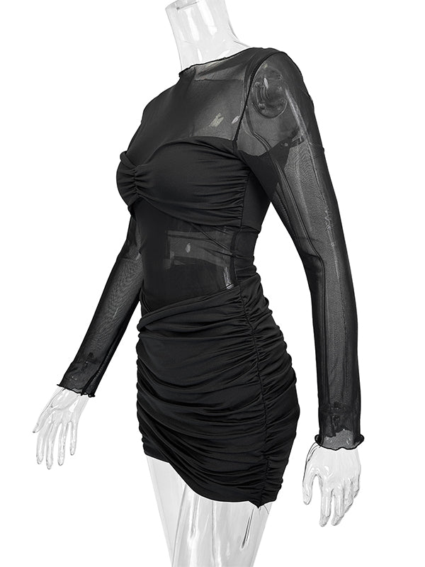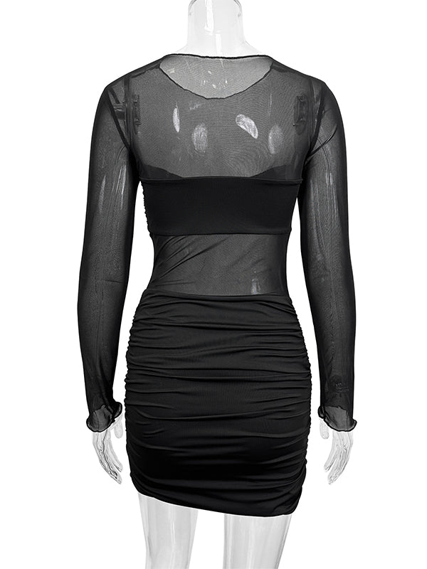 Momyknows Black Ruched Sheer Baby Shower Maternity Mini Dress