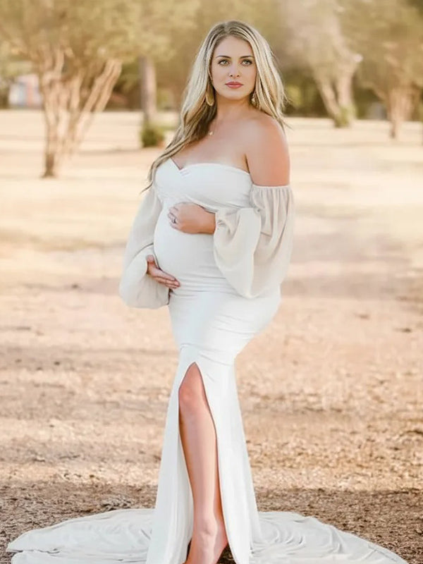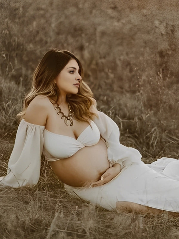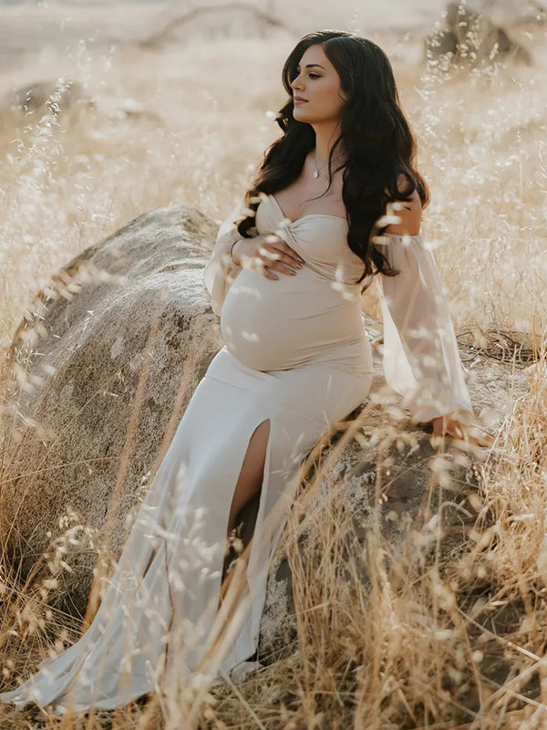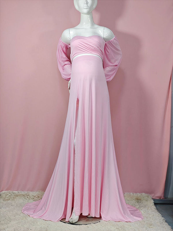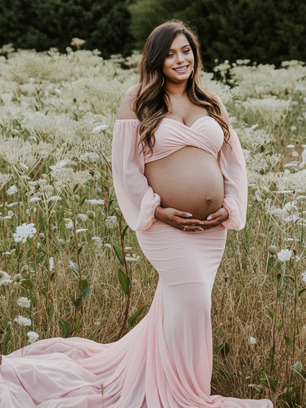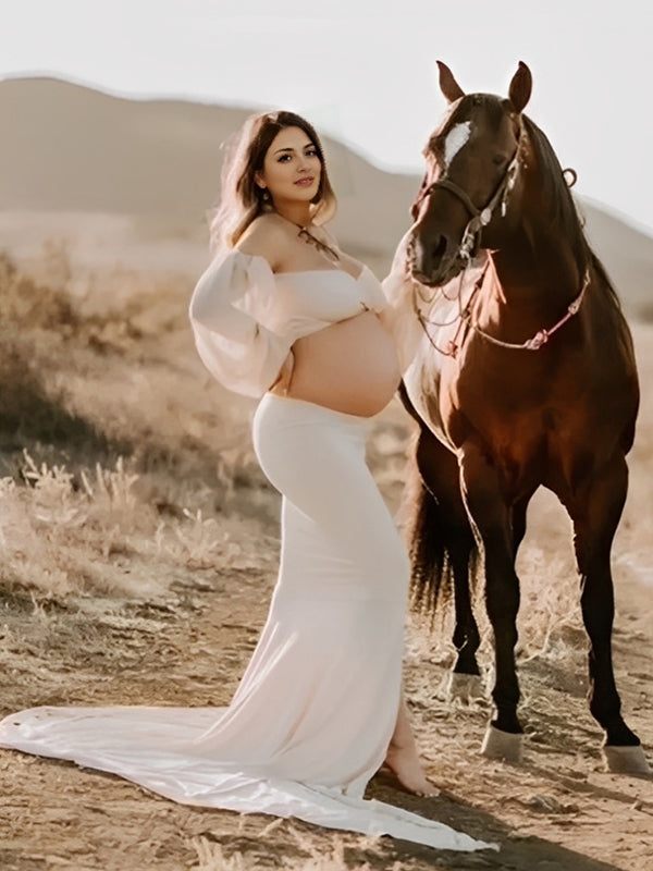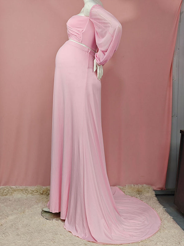 Momyknows Off Shoulder Side Slit Train Crop Multi Way Two Piece Set Boho Maternity Maxi Dress