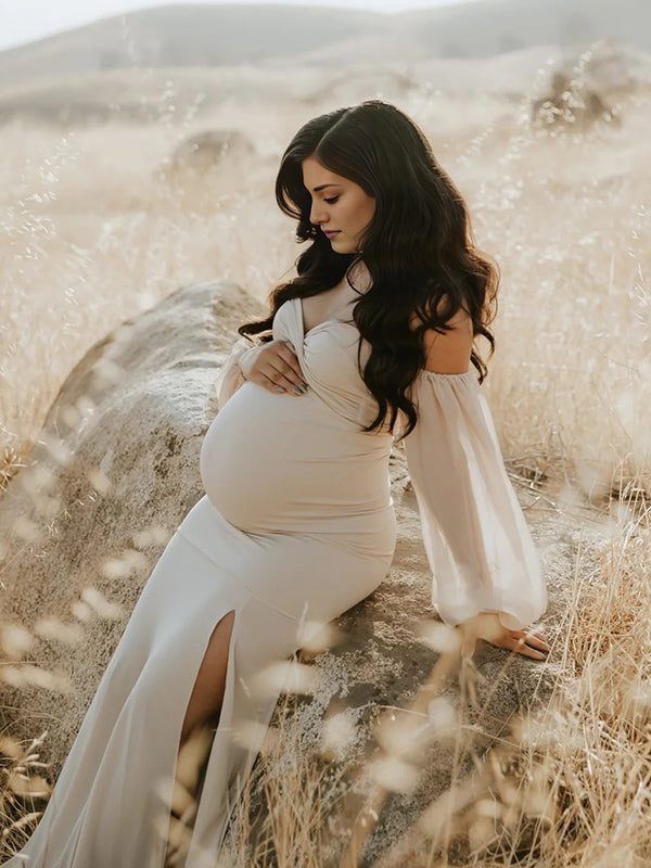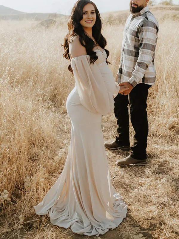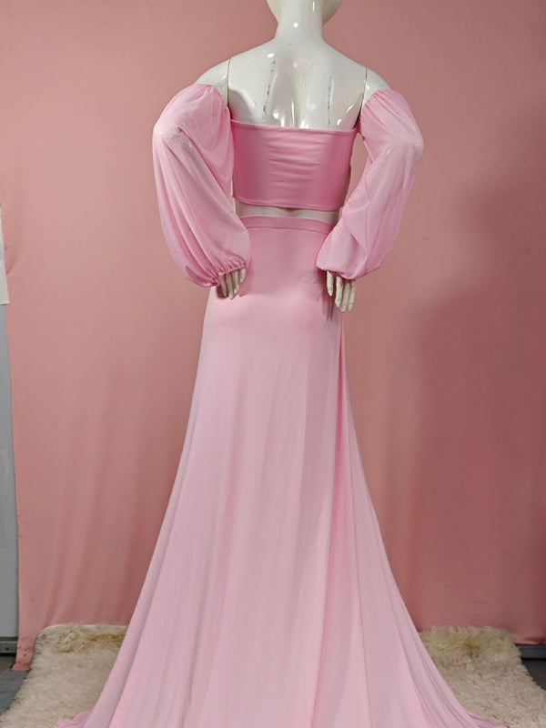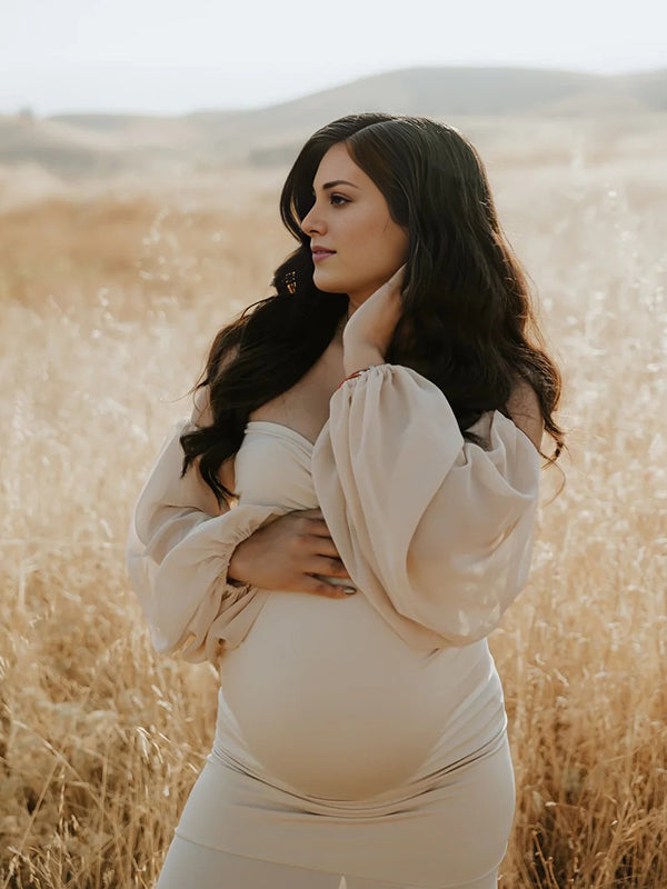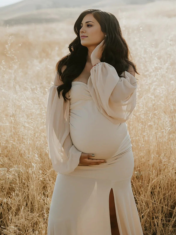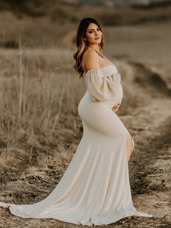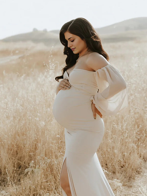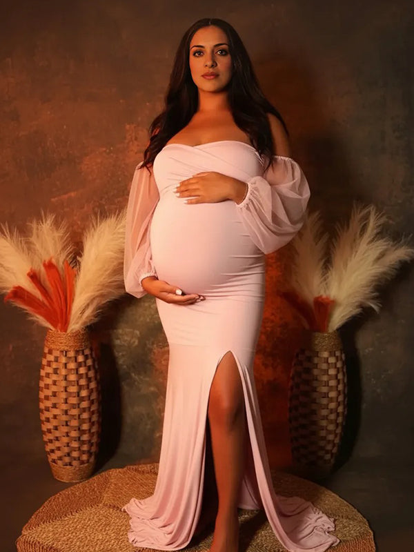 Momyknows Off Shoulder Side Slit Train Crop Multi Way Two Piece Set Boho Maternity Maxi Dress