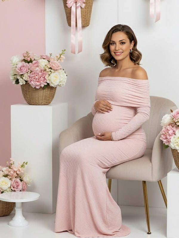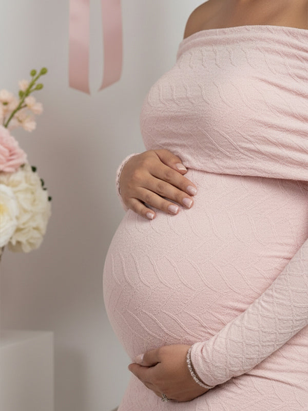 Momyknows Pink Textured Ruched Backless Mermaid Elegant Maternity Maxi Dress