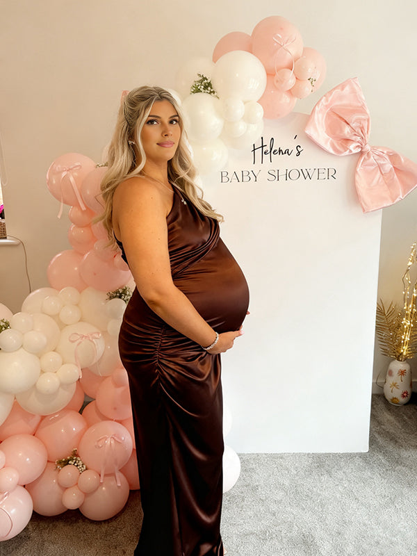 Momyknows Oblique Shoulder Side Slit Ruched Maternity Baby Shower Maxi Dress