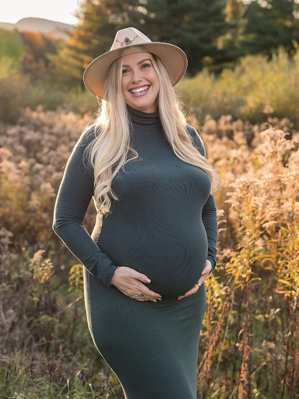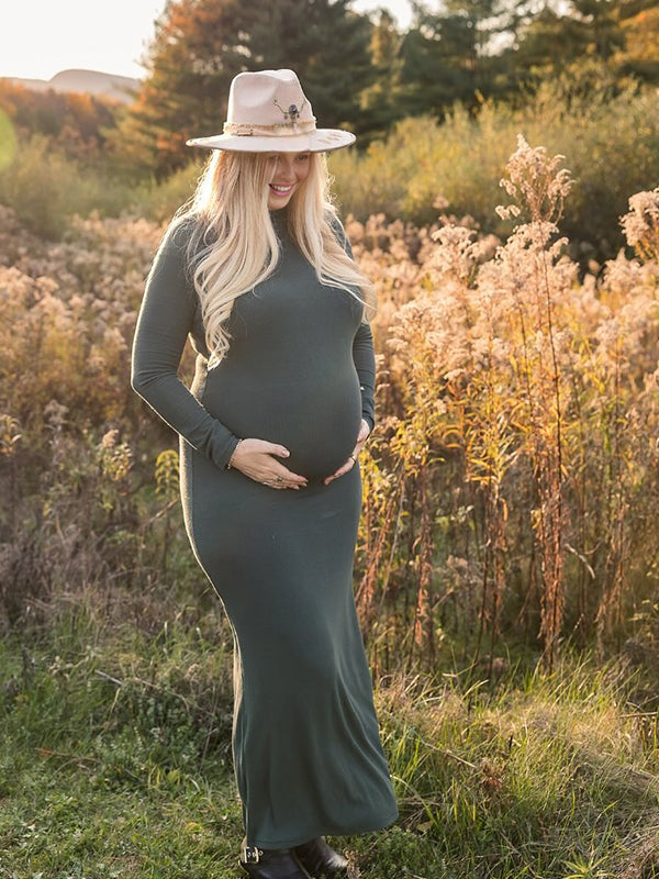 Momyknows Green High Neck Plus Size Maternity Photoshoot Maxi Dress