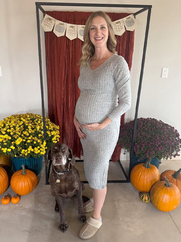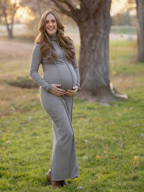 Momyknows Light Grey Knit Baby Shower Maternity Maxi Sweater Dress