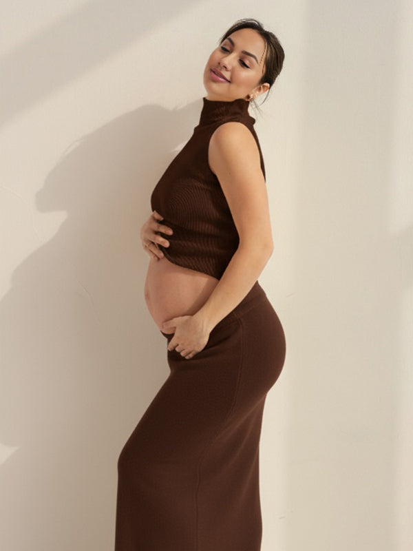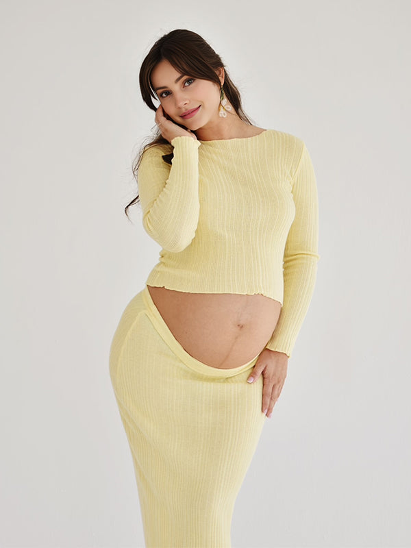 Momyknows Knit Crop Bodycon Two Piece Set Maternity Sweater Maxi Dress