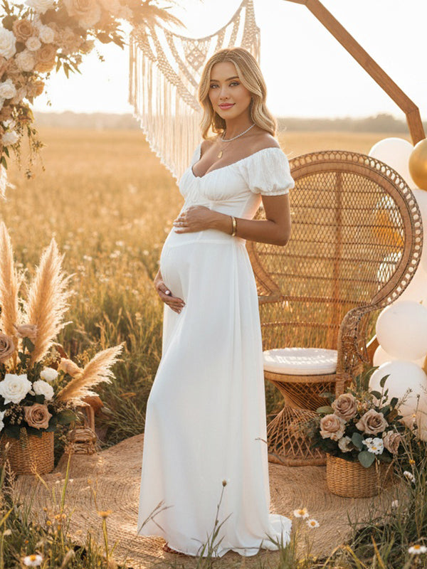 Momyknows Ruched Solid Color Photoshoot Maternity Maxi Dress