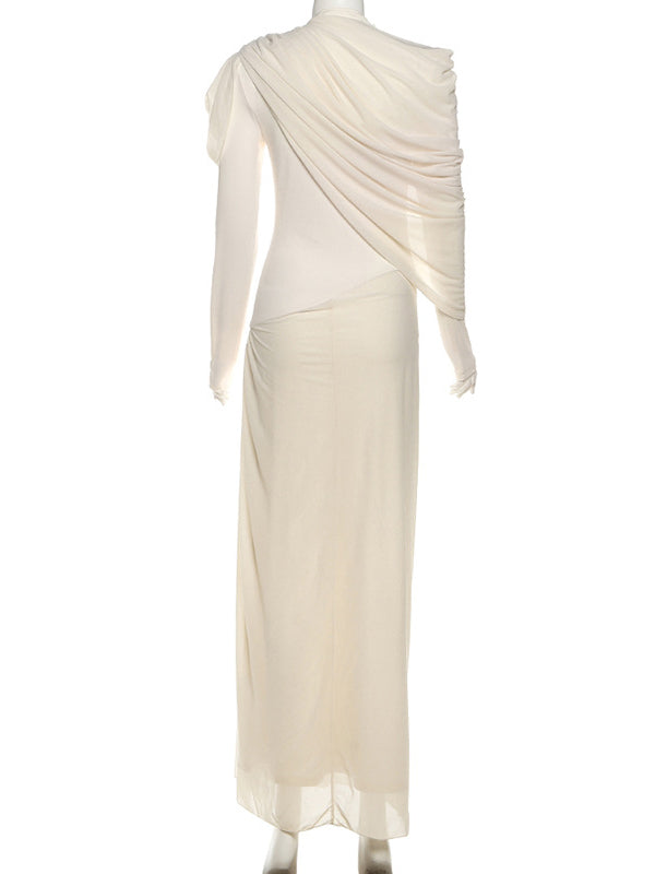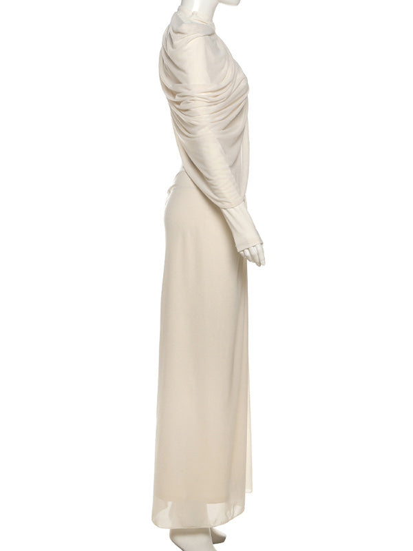 Momyknows Apricot Draped Ruched Grenadine Baby Shower Maternity Maxi Dress