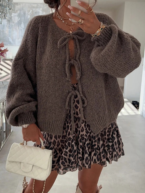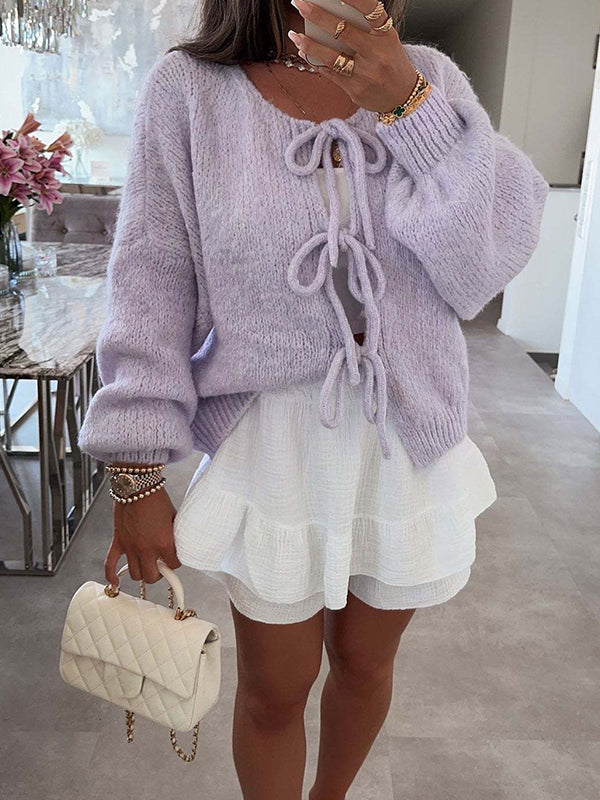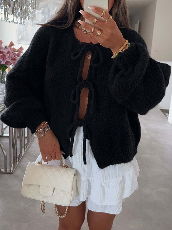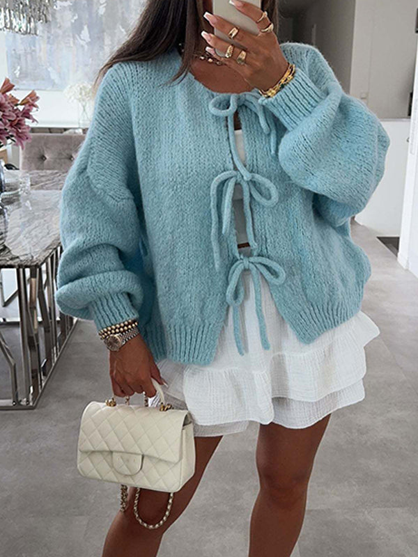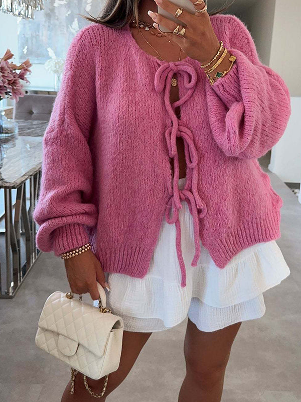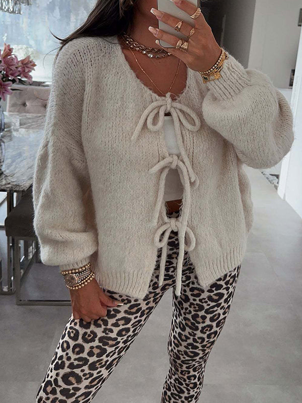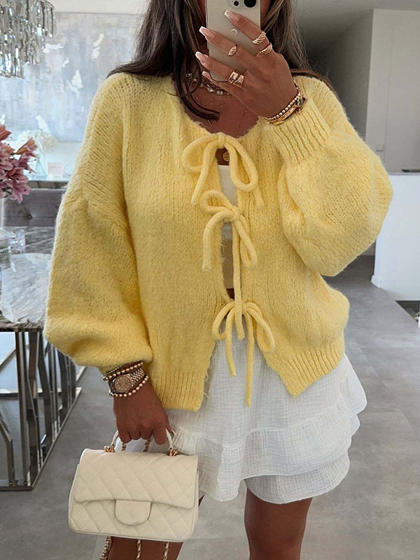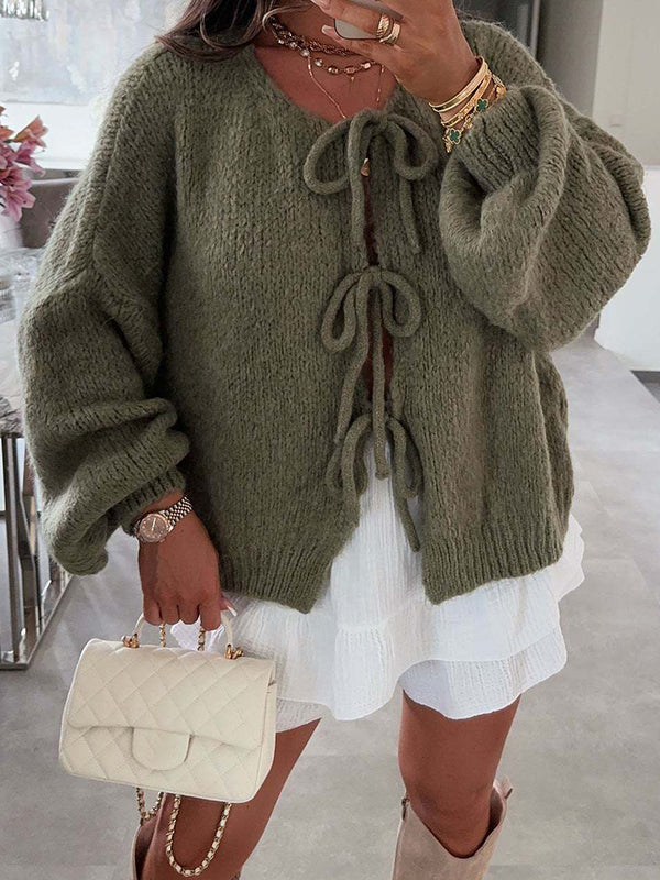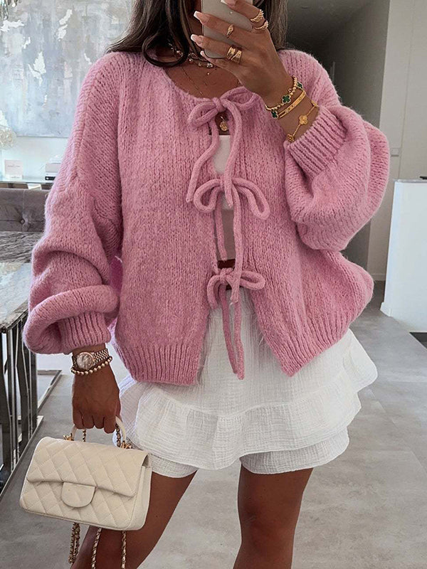Momyknows Knit Bow-Tie Front Sweater Sweet Maternity Cardigan