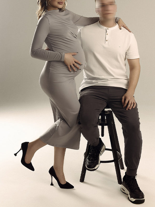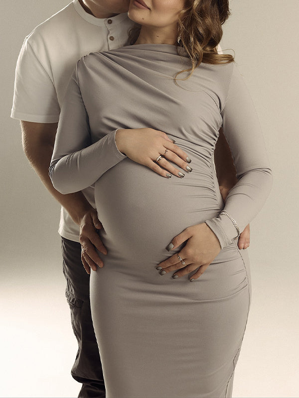 Momyknows Ruched Solid Color Photoshoot Maternity Maxi Dress