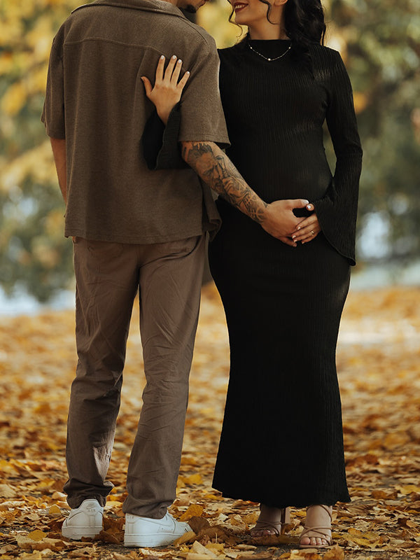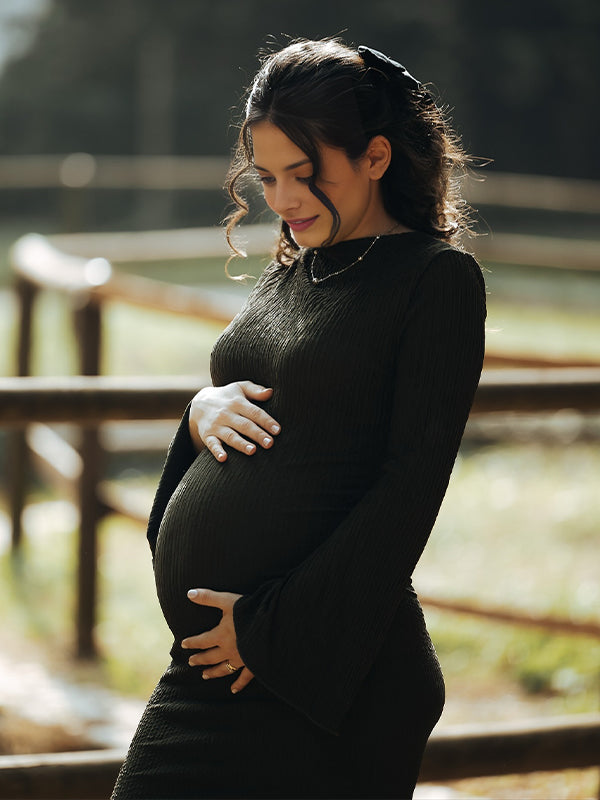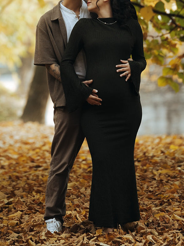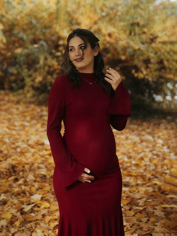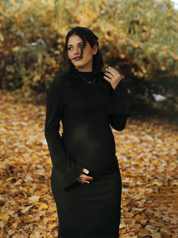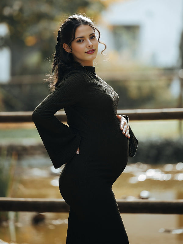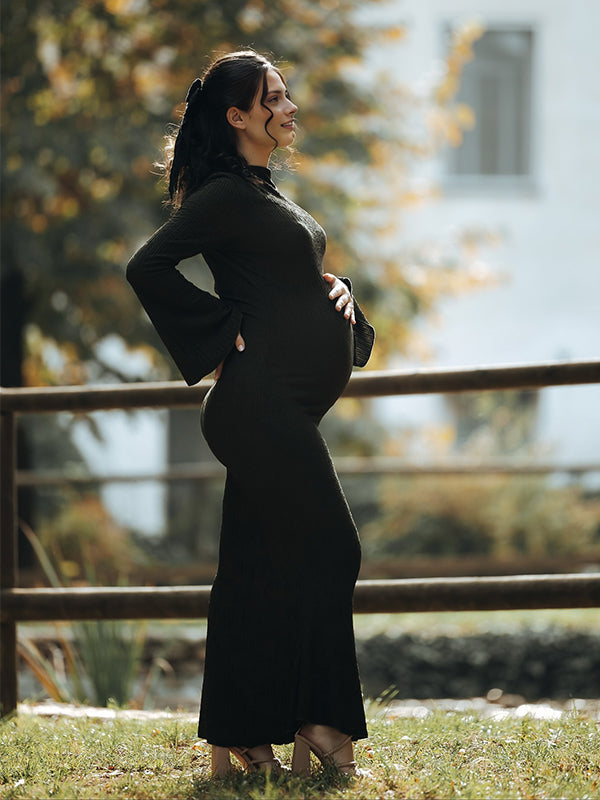 Momyknows Smocked Flare Sleeve Photoshoot Maternity Maxi Dress