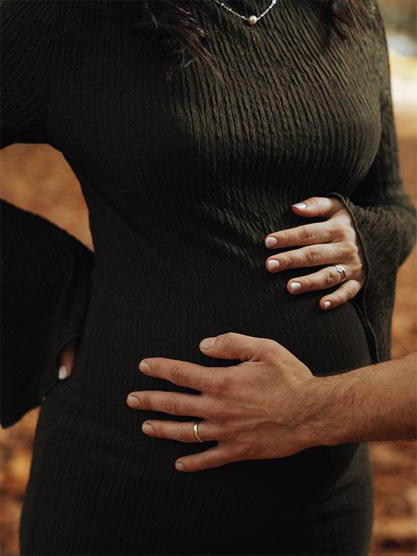 Hips: Using a soft tape measure or piece of ribbon, measure around the fullest part of your hips underneath your baby bump.