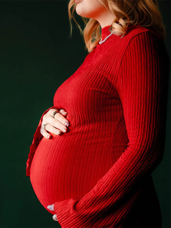 Momyknows Red Smocked Christmas Photoshoot Maternity Maxi Dress