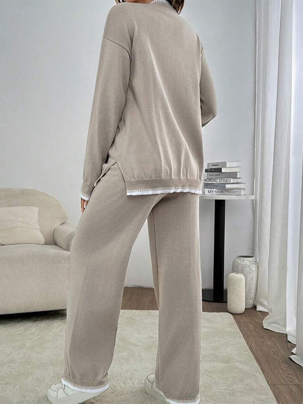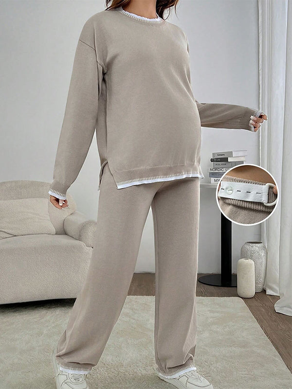 Momyknows Khaki Crochet Hit Color Two Piece Jogger Set Maternity Sweater Photoshoot Outfit