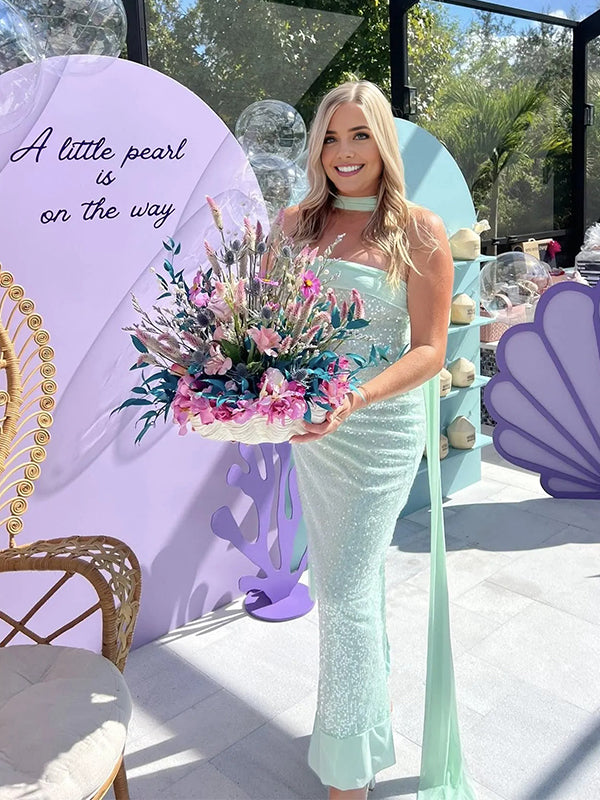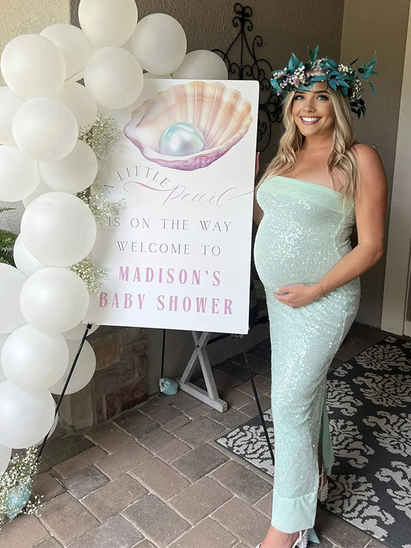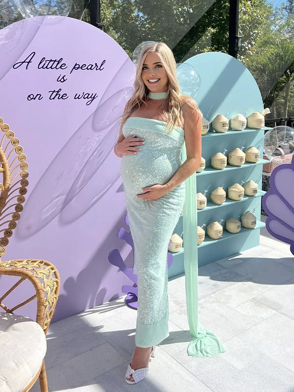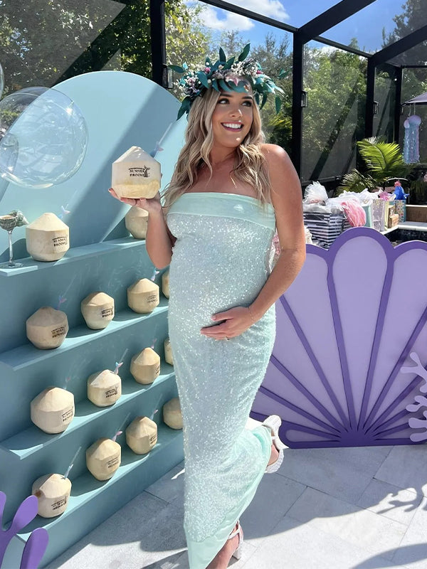 Momyknows Mint Green Sequins Wrap Back Slit Baby Shower Maternity Maxi Dress