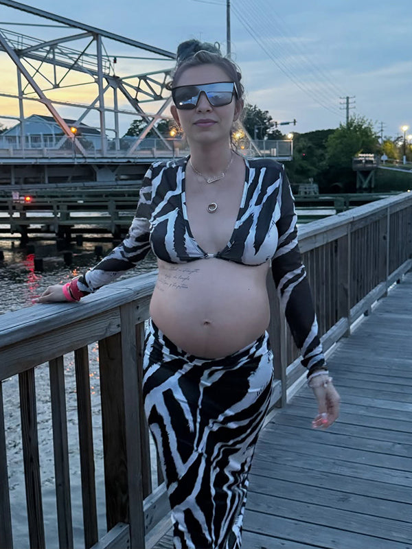 Momyknows Black Print Ombre Two Piece Maternity Photoshoot Maxi Dress