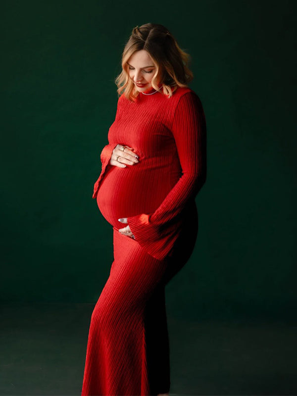Momyknows Red Smocked Christmas Photoshoot Maternity Maxi Dress